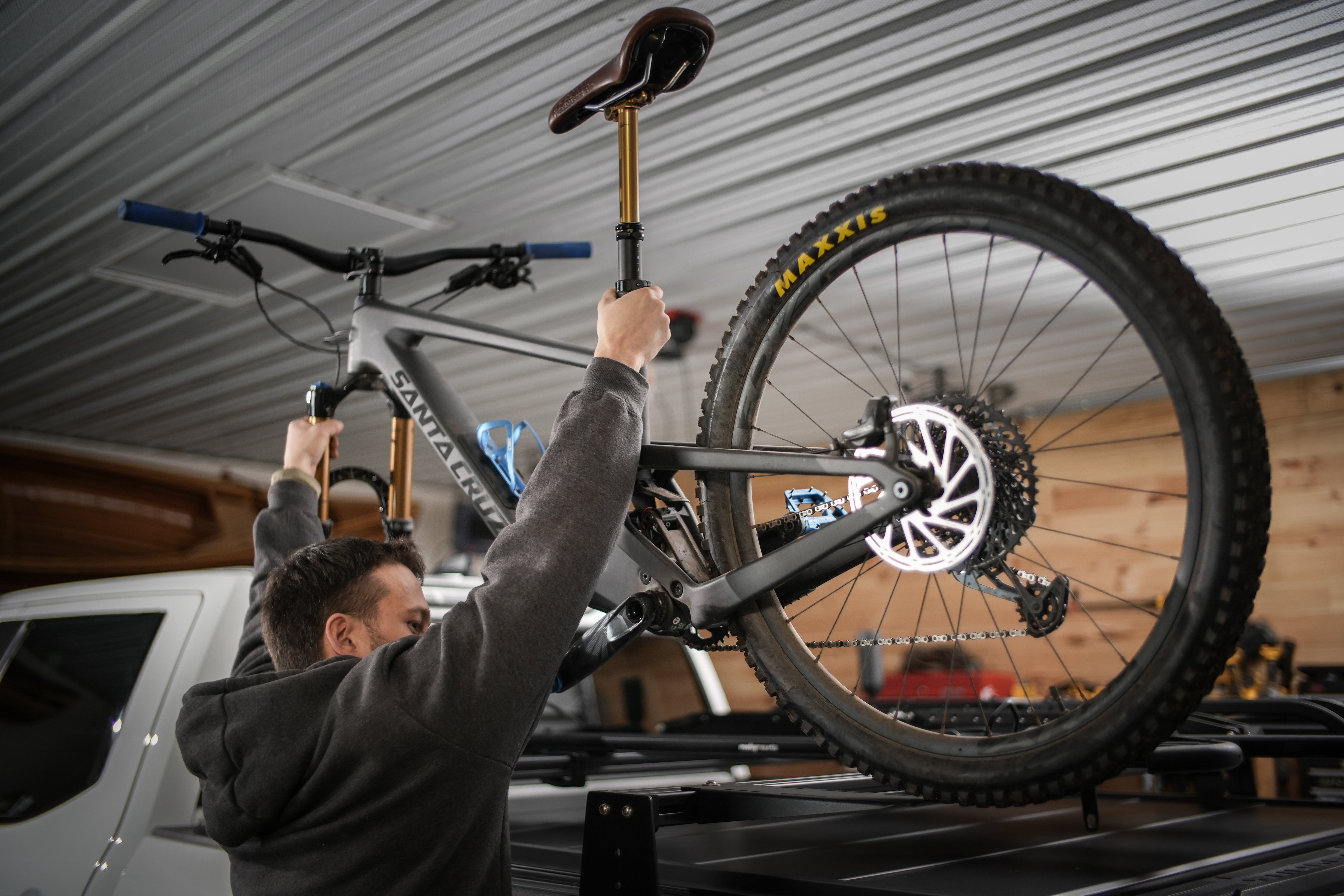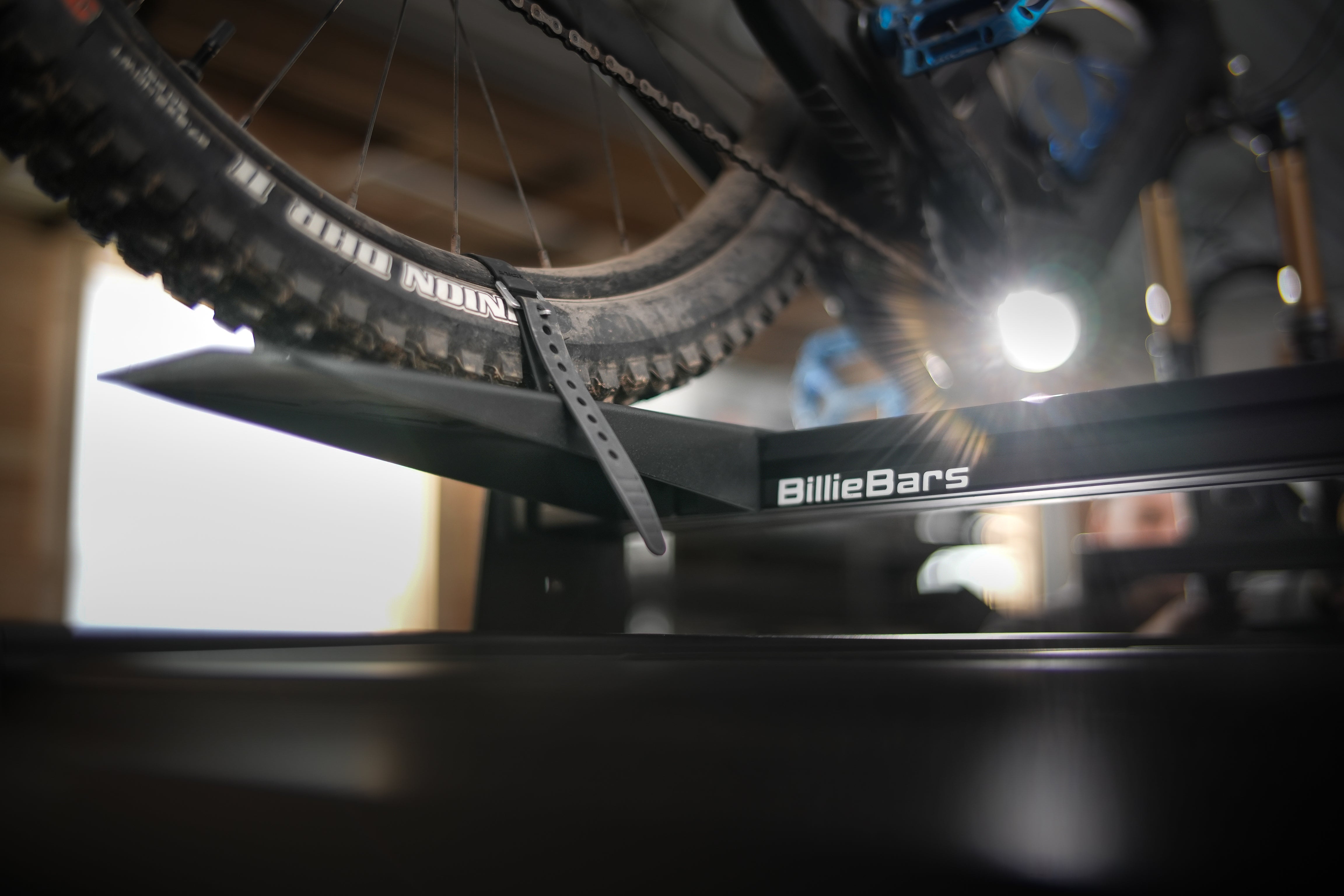 - Can be cantilevered off the cross bars to your length bike!